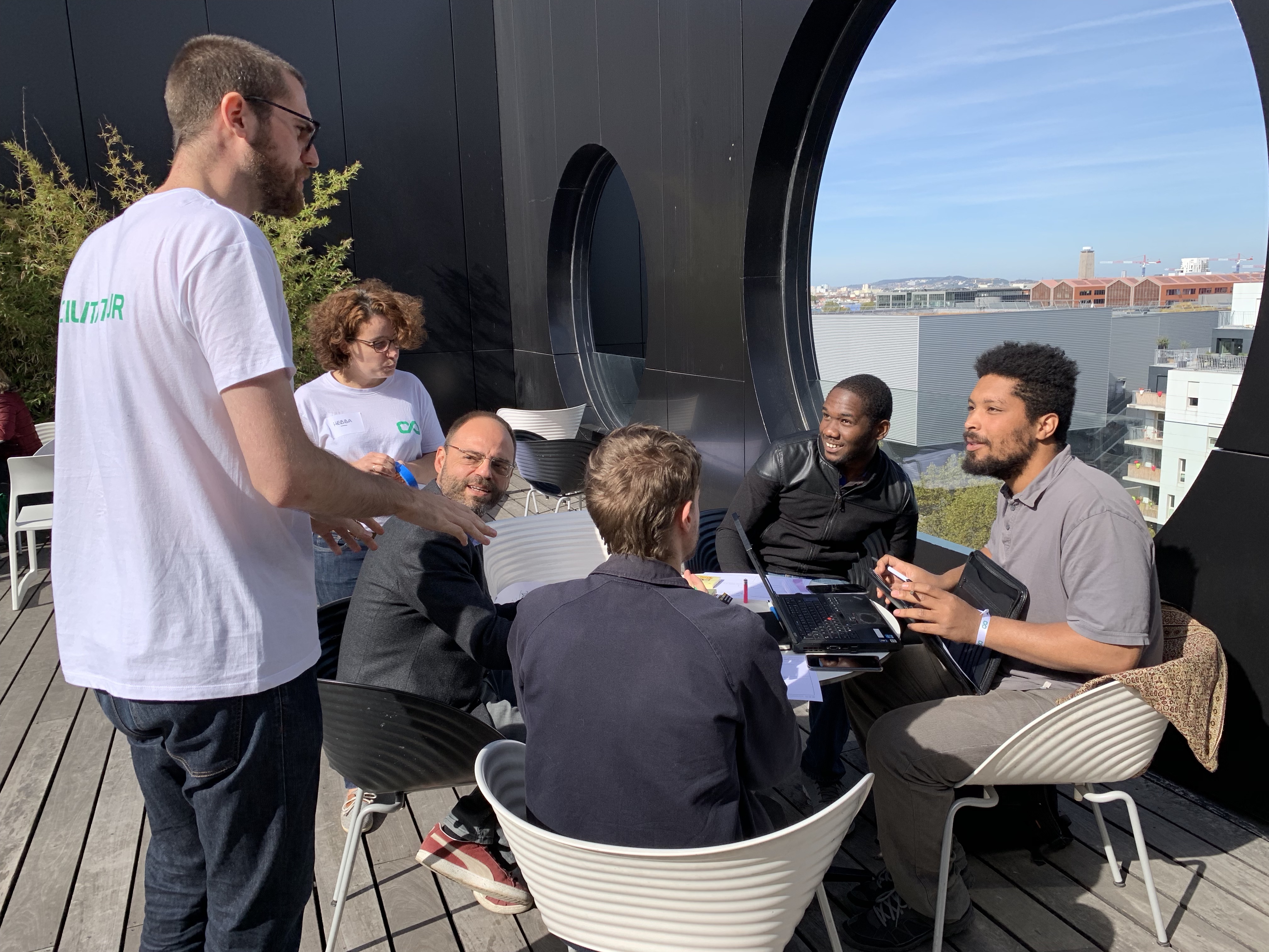 Les idées fusent, les regards se croisent les sourires s’échangent. De l’extérieur on croirait tout sauf une séance de travail. Et pourtant. « Vous connaissez Trello ? Sinon on pourrait commencer par se créer un groupe What’sApp » suggère un participant.