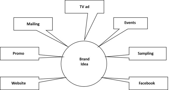 La communication déclinée est l’homogénéisation des contenus sur différents touchpoints. Autour d’une « brand idea », la marque empile un certain nombre de touchpoints qui font vivre cette brand idea avec plus ou moins de pertinence selon le contexte : media, points de vente, digital, CRM, sponsoring, etc.