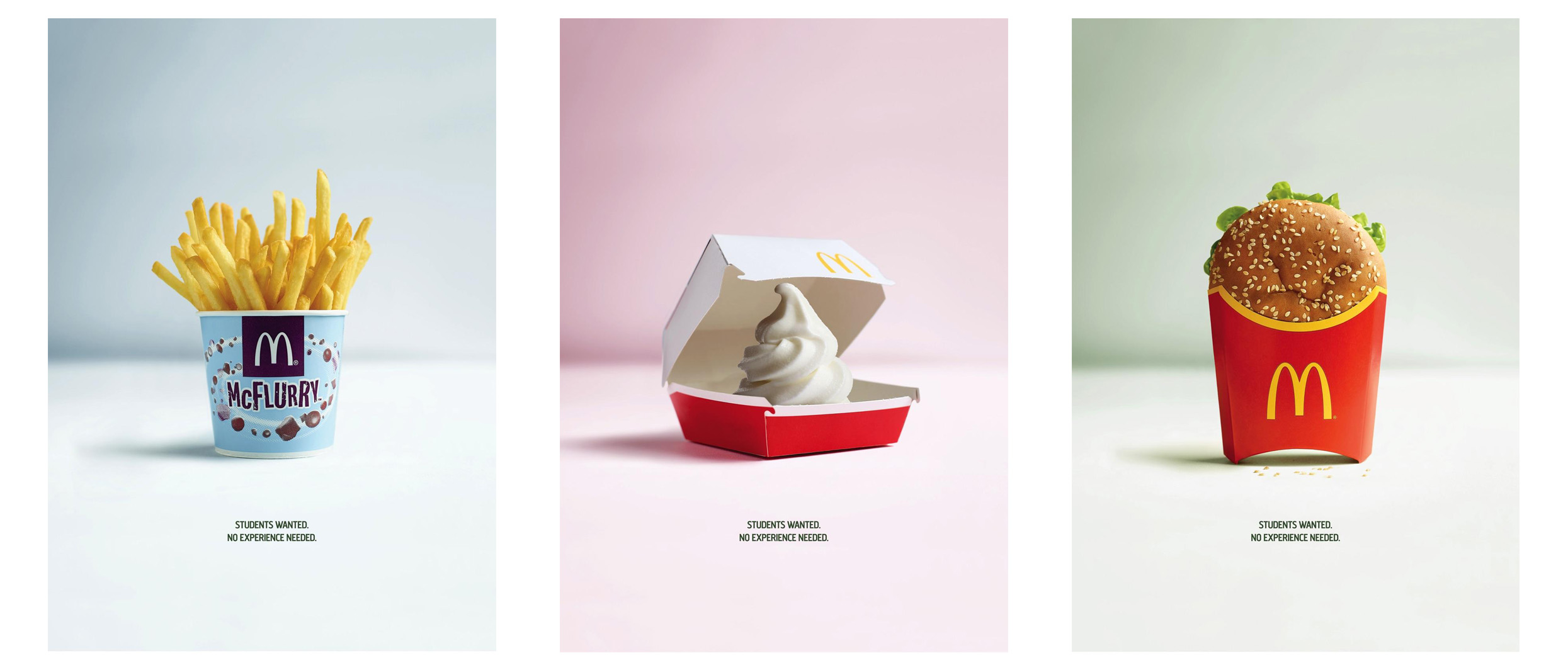 McDonald’s réussit à créer un impact fort en cinq mots et un visuel qui montrent tout : de l’humour, de la bienveillance et du discours de marque. On tourne un peu les étudiants en dérision mais on montre aussi qu’on les aime et les accueille. Ça change des photos d’étudiants qui sourient à leur poste de travail avec le discours planplan habituel.