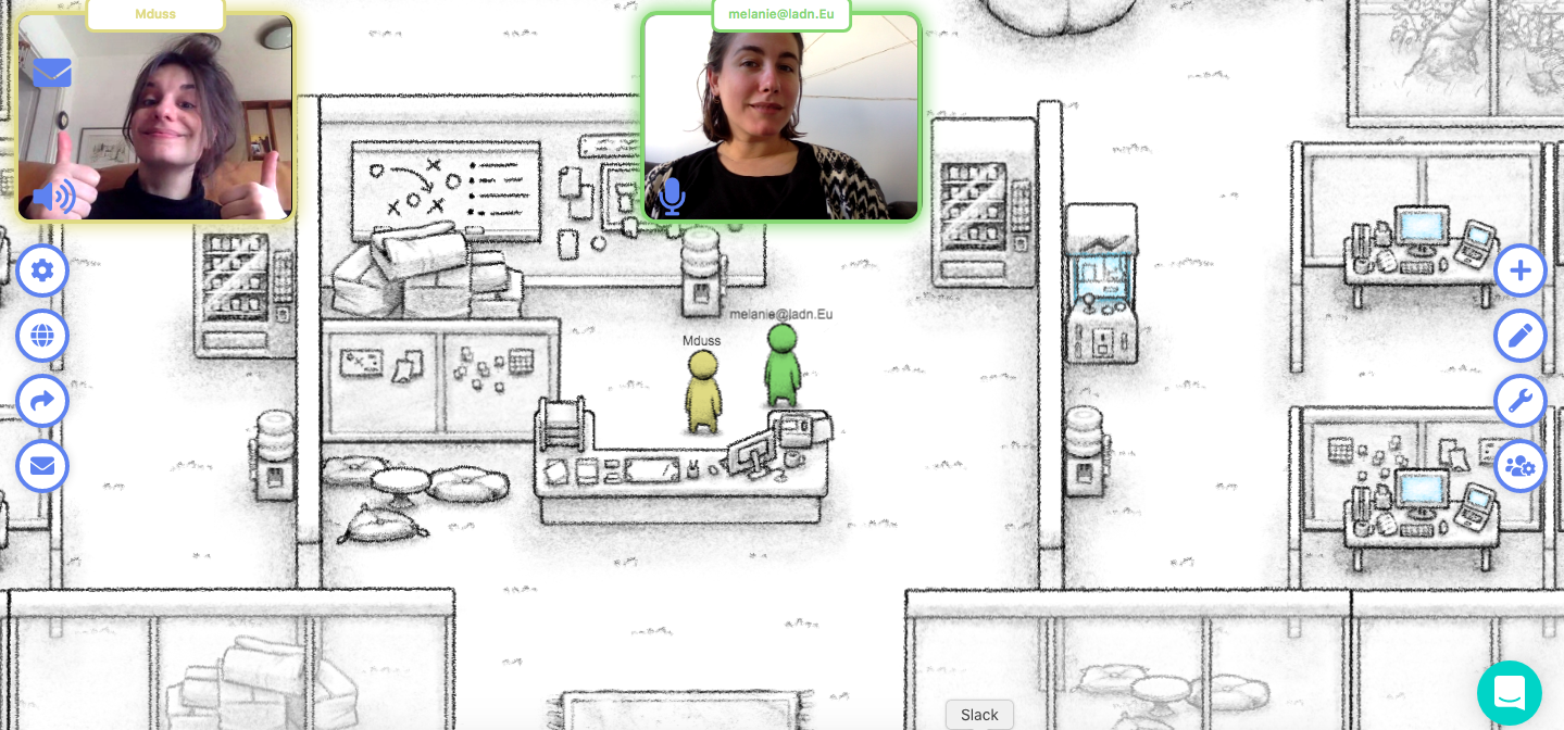 Dans ces nouveaux espaces virtuels, il est tout à fait possible de représenter le bureau tel qu’on le connaît – avec ses espaces de travail, et ses espaces de détente. Il suffit ainsi d’aller retrouver un collègue positionné près de la machine à café pour que les caméras et micros des internautes s’activent. Il est alors possible d’avoir une discussion spontanée – du moins, plus que lorsque l’on envoie une invitation Zoom.