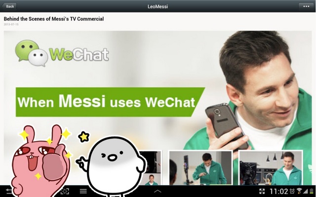 Même si on le sait, la concurrence de services équivalents ou proches comme Line (Japon), NimBuzz (Inde), KakaoTalk (Corée du Sud) est déjà forte sur le marché asiatique, il en est de même dans les pays occidentaux avec des services comme WhatsApp, voire Snapchat. Tencent ne lésine donc pas sur les moyens pour devenir le leader mondial des applications mobiles sociales : il a investi plus de 200 millions de dollars l’année dernière pour assurer ce développement. Action la plus visible mise en place : l’appel à la star mondiale du football Lionel Messi.