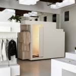 Au total, ce sont 9 « boxes » qui peuvent s’assembler au gré du merchandising, pour former un unique escalier ou des espaces confinés pour répondre aux besoins de la boutique : rayonnages, cabines d’essayage, mais aussi lieux de stockage ou de transaction.