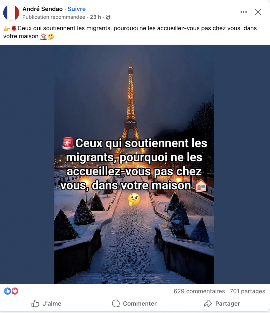On pourrait penser que l’Europe, et notamment la France, est moins touchée par cette dérégulation des contenus polarisés, d’autant qu’en février 2024, Meta avait annoncé une réduction de la visibilité des posts politiques, notamment en raison de l’approche des élections européennes. Soit cette réduction n’a jamais vraiment été effective, soit elle n’est plus en vigueur. Dans les deux cas, Facebook continue d’être une cocotte-minute médiatique aux relents toxiques.