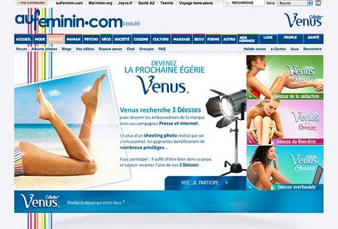 auFeminin.com leader en France et en Europe sur la cible féminine, a mis en place une opération innovante jouant la carte de l'interactivité, de la caution éditoriale et de la proximité avec les consommatrices : l'élection des 3 égéries Venus.