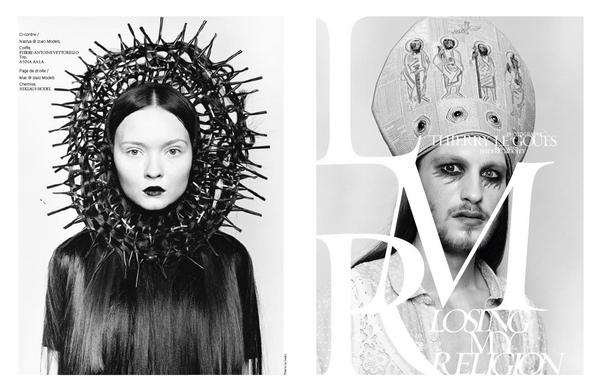 Donatella Versace est l'invitée de ce numéro tout comme Serge Lutens et Lou Douillon. Si Thierry le Gouès immortalise les modèles qui font la Une, il porte un regard particulier sur les veuves noires très pieuses, également en noir & blanc. Religion et noir & blanc se retrouvent par ailleurs dans une série toujours réalisée par le photographe et éditeur de la publication.
