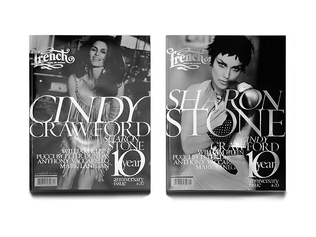French Revue de Modes s'offre pour ce 10ème anniversaire deux unes. Une consacrée à Cindy Crawford et l'autre à Sharon Stone. Pour ses lecteurs, le magazine offre des séries de photos exclusives et deux films réalisés par Thierry Le Gouès, le directeur de la publication.