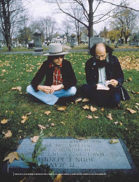 Bob Dylan et Allen Ginsberg se recueillent sur la tombe de Kack Kerouac pendant la tournée Rolling Thunger (1975)