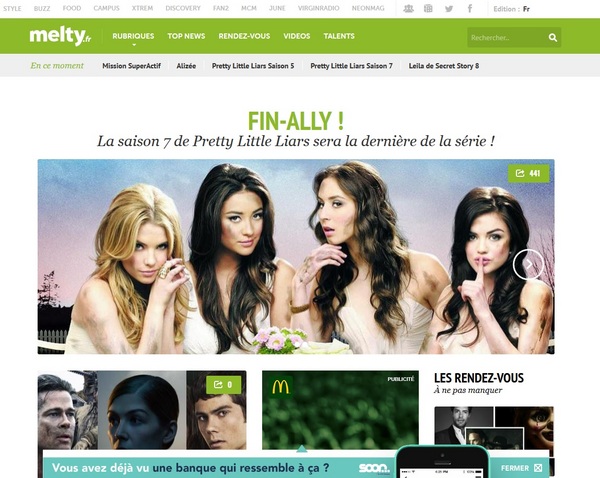 RP : Nous sommes partis du fait très simple, qu'il faut apporter de la valeur à la publicité. Ne pas prendre les jeunes pour des idiots, leur parler franchement et leur apporter de la valeur Nous avons ainsi structuré toute notre offre publicitaire sur le brand content avec un produit clé que nous appelons le "Content Corner", le native advertising, sur l'exposition de marque etc… afin que cette offre soit assez claire pour nos annonceurs. Nous sommes ainsi en mesure de mettre à la disposition des annonceurs une équipe éditoriale capable de structurer un univers de marque au sein de melty avec du contenu : pendant le Mondial 2014, nous avions par exemple imaginé pour CanalPlay un programme intitulé "la Coupe du Monde des séries » sur lequel nous faisions voter les internautes. Nous créons également beaucoup de web-séries et de concours qui créent de l'engagement social. En fonction des territoires des marques, nous choisissons un angle : cela a été le cas pour Banque Populaire par exemple avec le programme Super Activ Man. Pour cette série nous avons recruté un jeune candidat pour le rôle.