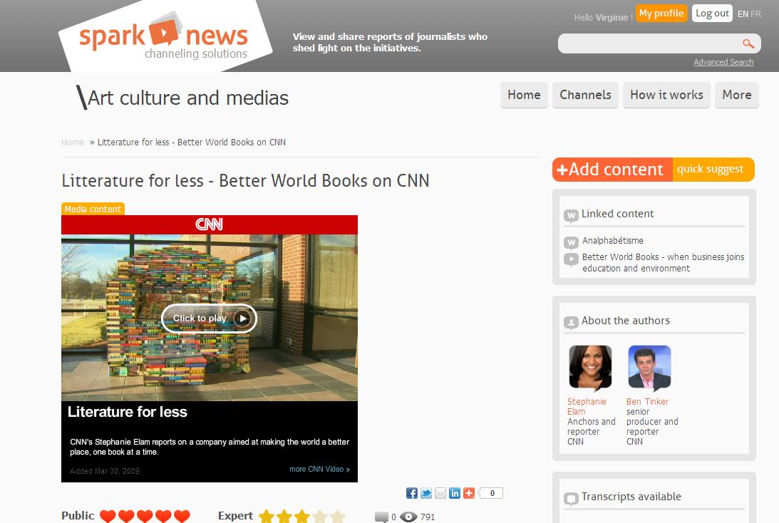 La plateforme de contenus media créée par Christian de Boisredon est au service des journalistes, des acteurs de terrain et du grand public. Elle a pour vocation de valoriser et développer ce que Sparknews nomme l'ImpAct journalism : les media alertent le public des injustices et des dérives, et en relayant les solutions existantes face à ces problèmes, ils donnent au public les moyens d’agir. Sparknews.com, accessible gratuitement dès ce 1° juin au grand public, a été créé avec le soutien de rédacteurs en chefs et journalistes du monde entier parmi lesquels Laurent Joffrin (Nouvel Observateur), Dominique Seux ( Les Echos),...
