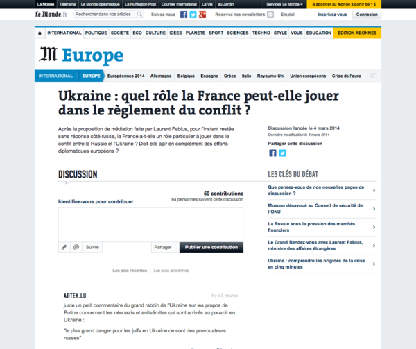 Simultanément Le Monde lance les fils de discussion, inspirés du live du Monde.fr, cette nouvelle rubrique est dédiée aux débats: "L'idée est de créer autre chose que de l'invective. Mais d'être contructif. Les débats seront structurés et animés par les journalistes de la rédaction" précise Nabil Wakim, rédacteur en chef du monde.fr