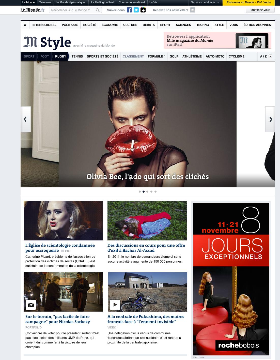 Par exemple sur la chaîne Style, les contenus de M le magazine du Monde y sont intégrés tout comme son carroussel qui devient un véritable espace premium pour les annonceurs. « Accueillir les contenus de M, dans la rubrique Style s’est imposé comme une évidence. Cela va devenir une chaîne à part entière qui accueillera tout le lifestyle avec les rubriques beauté, mode, gastronomie, voyage et autres, qui ne vont plus vivre sur un rythme hebdomadaire et seront alimentées via des provenances des différents services. Cela nous permet de déployer une offre supplémentaire sur le segment du luxe qui est un segment en croissance. En capacité publicitaire nous avons la possibiiité d'offrir du premium sur chacune des chaînes » précise Elisabeth Cialdella, directrice déléguée marketing & Communication de M Publicité. La rubrique Economie, avec la création d'une newsroom fait partie des leviers de croissance de la régie. Le nouveau site offre moins de formats mais plus impactants avec des bannières en 1000x250 ou 300x1050 et un format appelé "oreilles" encadrant le logo du Monde.