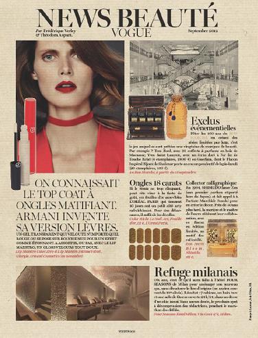 Pour ce numéro "fureur du noir" car selon Emmanuelle Alt, la tendance de cette rentrée en mode sera le noir : "L'automne sera noir. Ainsi en a décidé Vogue Paris", la rédaction offre à ses lectrices une version revue et reliftée de Vogue. De nouvelles rubriques, une nouvelle typo, et de nouveaux invités. La blogueuse Garance Doré y signe son premier billet d'humeur sur le smoking.