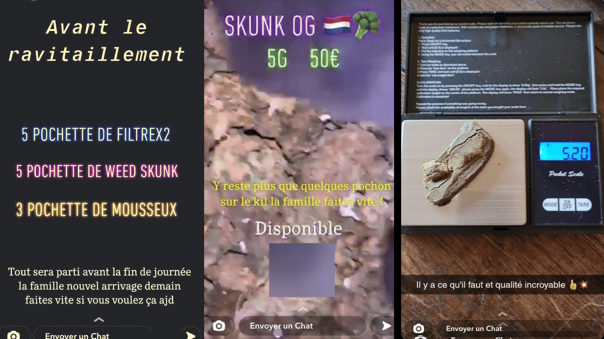Au sujet de cette facilité, l’étudiant n’est pas seul à témoigner. D’après Caroline, 19 ans, la plateforme permet d’agir sans crainte de se faire avoir. « Je commande régulièrement de l’herbe avant de partir en vacances. Pour cela, j’ai mes contacts sur Snapchat. La plupart des vendeurs utilisent des pseudonymes évocateurs, et utilisent des noms de code pour esquiver l’algorithme. Sur l’appli, les messages et stories sont éphémères, rien ne reste vraiment. Ça facilite les choses et je ne crains plus d’être interpellée au moment de l’achat. Parfois, le dealer utilise même la "carte Snap" (sorte de GPS entre amis) pour se rendre visible ou pour retrouver un client. Comme il est impossible d’avoir accès à cette carte sans être ami avec le vendeur sur la plateforme, difficile d’imaginer la police employer cet outil pour traquer le deal. »