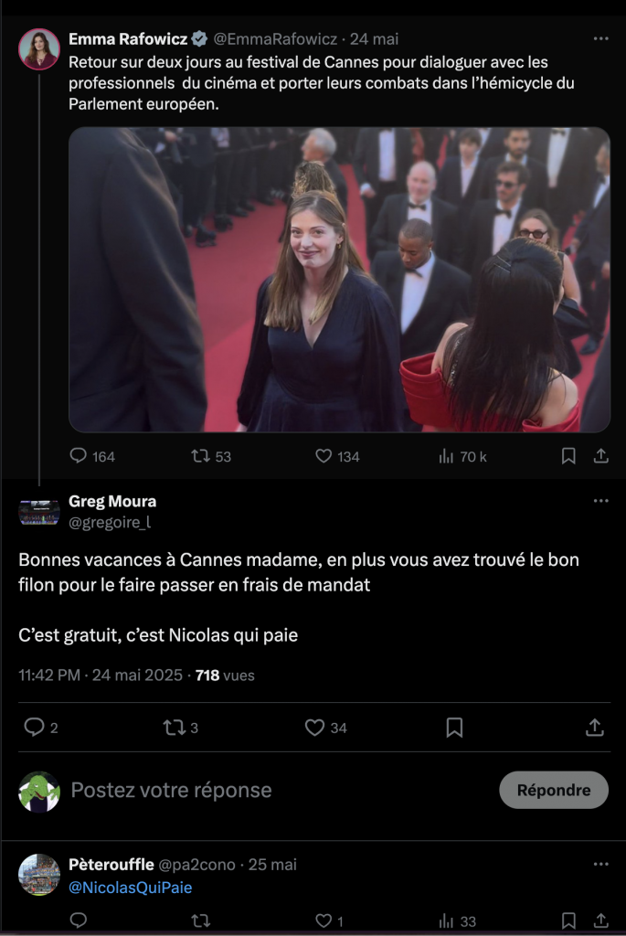 Une municipalité instaure les transports gratuits les week-ends, propose un nouveau festival, construit un parc ? Une horde de « Merci Nicolas » débarque. « Nicolas qui paie », autre mème d’extrême droite, incarnant un Français cadre actif trentenaire (et blanc, évidemment) dont les cotisations sont sans cesse prélevées pour les autres. Retraités, immigrés, artistes de gauche… « Si c’est gratuit, c’est Nicolas qui paie. »