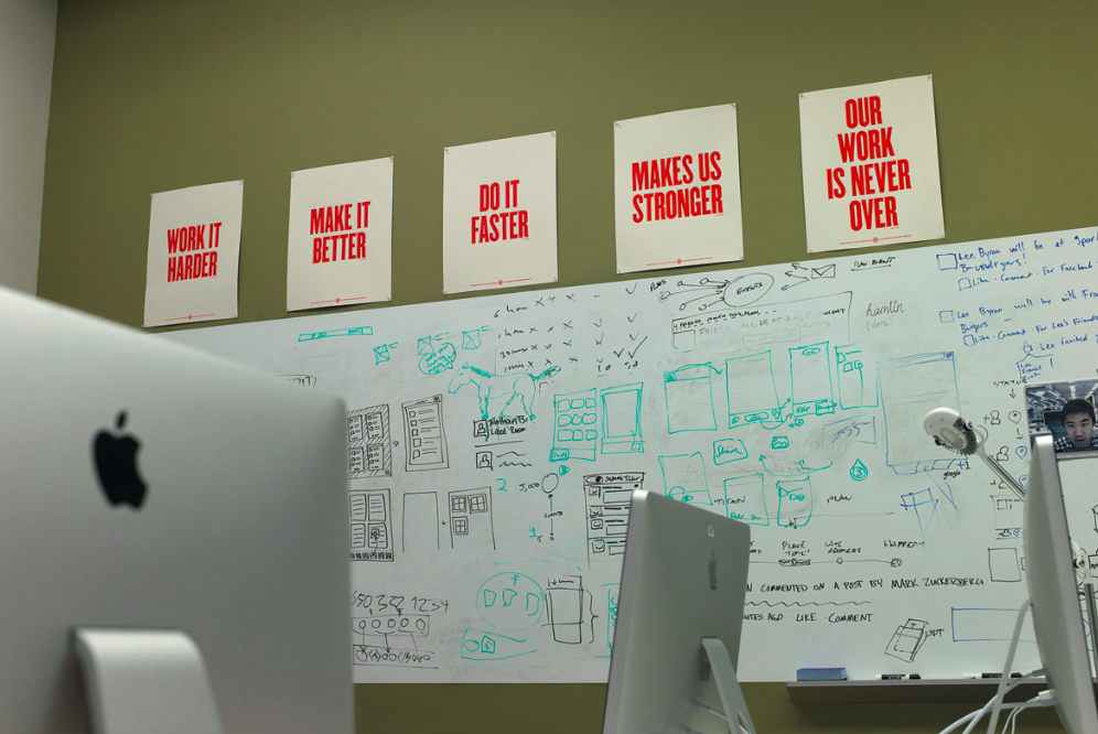 F. T.: Ce livre a été conçu par les designers à l’origine du logo « pouce levé » et de toute une série de symboles pour Facebook. C’est un projet créatif qui est venu des équipes et non du haut, parce que tout le monde a une compréhension informelle de ce qui se fait et ne se fait pas à l’intérieur de l’entreprise. Je crois que Mark Zuckerberg a simplement dit “ok allons-y ! ” C’est la définition même du style de management qui a été développé chez Facebook : implicite. Comme sur le Web, personne n’a de règles, parce que personne n’en a besoin. L’ironie, c’est que beaucoup de ces principes ( « autonomie radicale », ouverture et expression de soi au service de la communauté, quitte à travailler sur son temps libre, ndlr) viennent de la contre-culture des années 60, sauf que la vraie histoire a été oubliée.