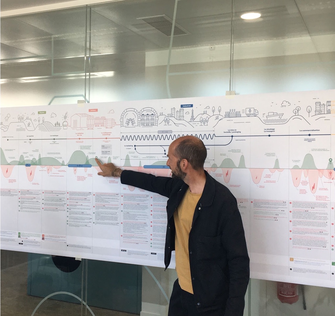 Vient ensuite une étape clé que le studio appelle « la cartographie de la cohérence » , sorte de gigantesque carte qui décortique la chaîne de valeur de l’entreprise. Il faut ici s’imaginer un moteur que l’on démantèle pour en visualiser tous les rouages. « Notre dernière cartographie faisait 6 mètres de long et 1,50 mètres de hauteur. Impossible à faire rentrer dans un PowerPoint, plaisante Antoine Fenoglio. Il faut que cette carte soit appropriable par des acteurs totalement différents, en particulier par ceux qui n’ont souvent pas voix au chapitre. En allant à n’importe quel endroit de la chaîne de valeur, on essaye de voir ce qui coince, ce qui fonctionne, ce qui peut être enrichi collectivement. »