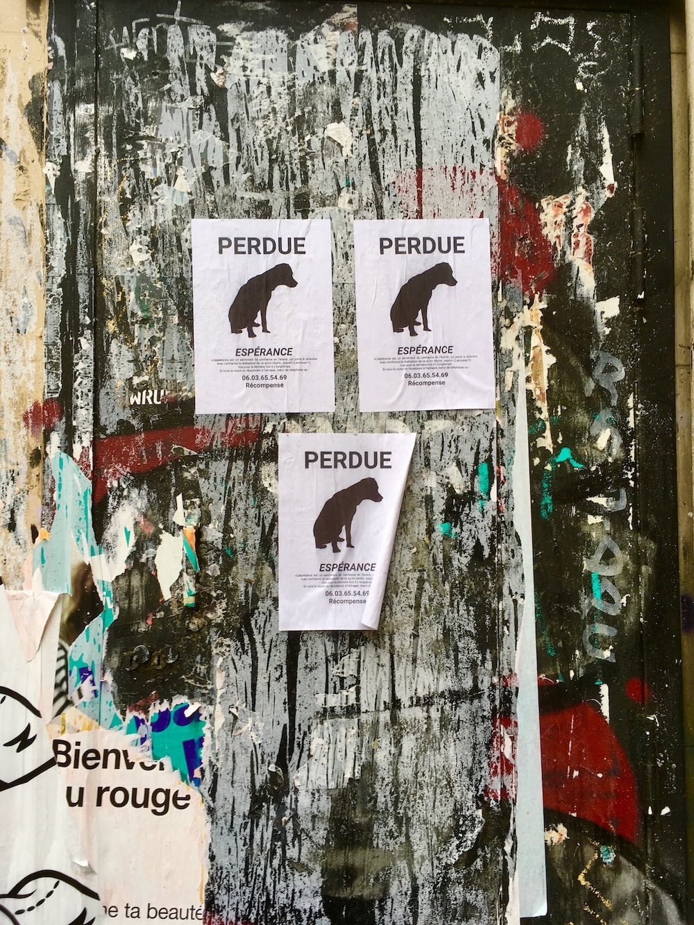 Le parcours se termine sur des œuvres à la portée plus collective, comme la série d’affiches « Perdue : Espérance », placardée dans le quartier du Marais. Dessus, une ligne téléphonique (celle de l’artiste) incite les passants à appeler à la condition d’avoir retrouvé non pas un chien, mais un peu d’espoir… Les réponses qu’il a reçues – certaines très premier degré, d’autres plus poétiques - sont compilées dans un livret. Elles sont la preuve qu’une forme d’empathie peut exister entre deux inconnus. Preuve aussi que l’autre, quel qu’il soit, peut apporter son lot de tendresse et de bienveillance : « Bonjour, j’ai retrouvé un peu d’espoir. C’est peut-être pas le vôtre mais il peut servir. Bonne journée. »