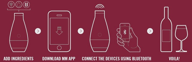Philippe James et Kevin Boyer se sont donc penchés sur le processus de vinification connectée, un concept qui permettrait, entre autres, de goûter à de grands millésimes à moindre coût. Ensemble, ils ont ainsi examiné la décomposition chimique précise de certains des meilleurs vins du monde (Sauvignon, Chardonnay, Pinot…), pour pouvoir ensuite les reconstituer, un peu comme l'industrie du parfum est capable de recomposer artificiellement les odeurs. L’objet contient un transducteur à ultrasons qui en résonnant accélère le développement de l'arôme du vin et est relié à un microcontrôleur Arduino, entre autres composants que les fondateurs souhaitent garder secrets : le tout est dilué dans un environnement contrôlé par un Smartphone sous iOS et Android. Pour démarrer le processus de vinification, il suffit à l’utilisateur d’insérer dans la ‘machine miracle’, le contenu d’un sachet composé de levure et de concentré de raisin.