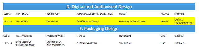 Dans la catégorie DESIGN c'est Sanofi-Aventis Group avec son agece Geommetry Global Moscow qui remporte que le Grand Cristal.