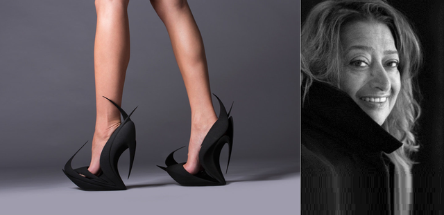 Zaha Hadid, architecte, explique que son modèle Flames est « inspiré par la lumière vacillante du feu […] des bandes de flamme semblent provenir du point du talon, grimpant vers le haut pour embrasser doucement le pied ».