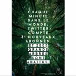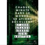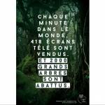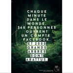 Le film, diffusé sur le web et en télé jusqu’au premier septembre, est soutenu par un plan média gracieux sur TF1, France TV et Canal+. Il est accompagné de visuels qui remettent en perspective le nombre d’arbres abattus. 2 000 grands arbres, ça fait beaucoup ? « Oui, quand on compare cela au nombre de naissances, d’avions qui décollent, de nouveaux abonnés Twitter » .