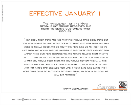 Au Colorado, pour fêter la vente libre du cannabis, le restaurant "Happa Sushi" revisite son menu.