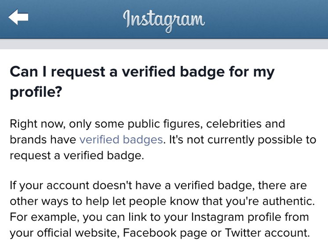 Au Royaume-Uni, les équipes d'Instagram nous ont expliqué qu'il n'avait, par ailleurs, jamais été possible pour un utilisateur ou une marque de demander un badge Vérifié. Le réseau social les attribuait « aux personnalités et aux marques qui ont une chance de voir se développer de faux comptes à leurs noms ».   A titre d'exemple, un faux compte de Rihanna avait réuni plus de 50 000 followers. Pour les marques, cela pourrait engendrer une confusion chez les utilisateurs.
