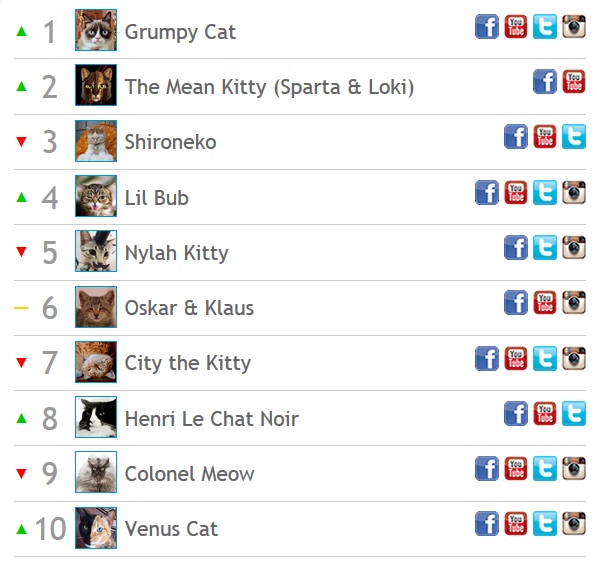 Les internautes pourront ainsi suivre mois par mois, sur la plateforme dédiée, leur évolution : des petites flèches à côté de leur nom servent d’indicateur. Sur le site, les internautes peuvent également soumettre des chats non répertoriés et s’ils ont réellement de l’influence, les voir intégrer au classement. En outre, les utilisateurs peuvent s'abonner pour recevoir les mises à jour mensuelles sur leurs chats influents favoris.