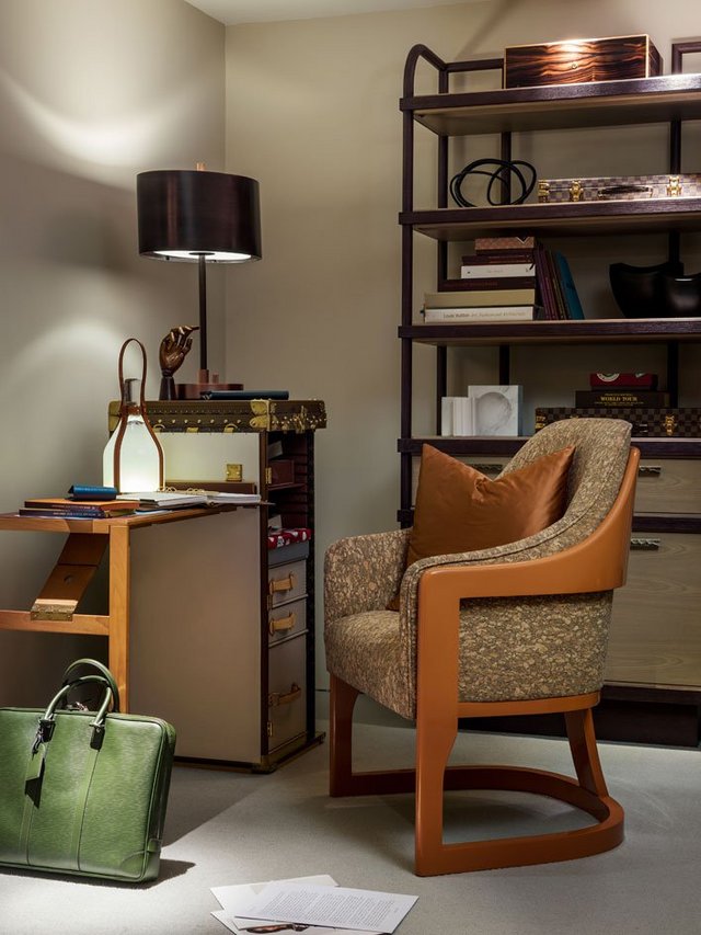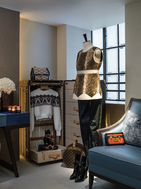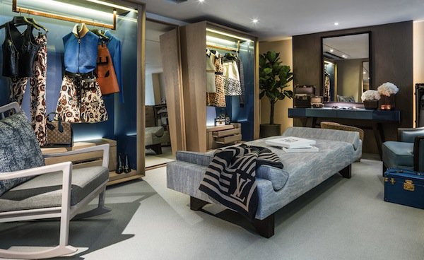 L’appartement comporte une cuisine, avec chef étoilé intégré, une salle de bain, un bureau, une salle à manger ainsi qu’un boudoir. Il est décoré de pièces d’art contemporain chinois dont certaines proviennent de la collection LV, mêlés à des tons bleu minéral, de vert olive et de mandarine censés rappeler les différentes pièces de la première collection féminine de Nicolas Ghesquière, le directeur artistique de LV. Atmosphère asiatique et contemporaine sont au rendez-vous et rappellent de manière omniprésente l’univers de la marque.