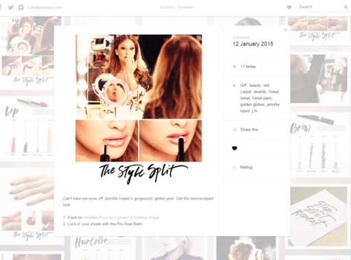 Mannequins, influenceurs, maîtres de la coiffure, experts du maquillage et autres artistes du nail art joignent leurs forces dans ce « beauty lab » qui permet de tenir le live et propose aux internautes d’acquérir immédiatement un style digne d’un des événements les plus glamour de l’année. L’ensemble était relayé sur les comptes Instagram, Twitter et Tumblr de L’Oréal Paris et accompagné de publicités sur Facebook et Twitter.