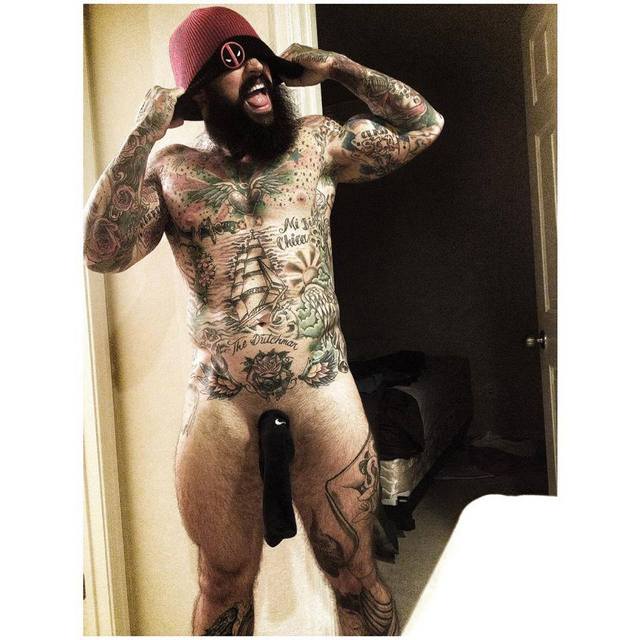 La recette, appliquée aux hommes, est la même à quelques détails près : le Selfie est cette fois-ci pris de pied et l’aspect ‘nude’ est pris au sens large du terme, puisque ces messieurs posent totalement nus, une chaussette en guise de feuille de vigne.