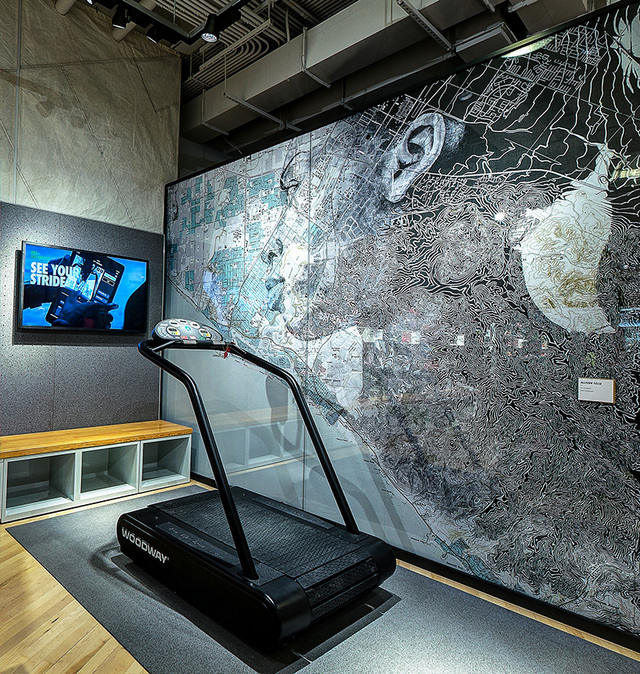 Le nouveau magasin Nike de Newport Beach en Californie propose aux femmes une salle de sport pour tester ses produits.