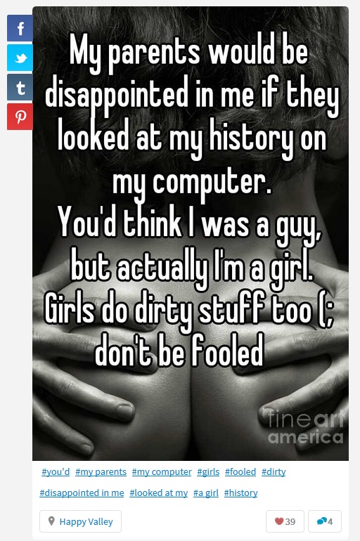Alors qu’est-ce que Whisper exactement et d’où vient ce succès ? Whisper, qui signifie « murmure », est une plate-forme de partage qui permet aux internautes de poster leurs secrets en gardant l’anonymat. Son fonctionnement est simple : il suffit de confirmer son âge (17 ans ou plus) et de poster l’intitulé de son secret en le liant à une photo (soumise par l’internaute ou choisie via l’application). Une fois mis en ligne, le secret peut être liké à l’aide de petits cœurs, être retrouvé grâce à un système de mots clés et, s’il devient populaire, finir en page d’accueil. L’application est gratuite et propose un système de messagerie interne pour que les utilisateurs puissent communiquer entre eux. Cette dernière fonctionnalité est payante (5,99 dollars par mois) et fait les choux gras de la firme. Whisper est souvent comparé à Poster Secret lancé en septembre 2011 et retiré de l’apple store seulement trois mois plus tard, en raison de contenus abusifs : Whisper, lui, s’est doté d’un système de repérage pour éviter tout contenu inapproprié.