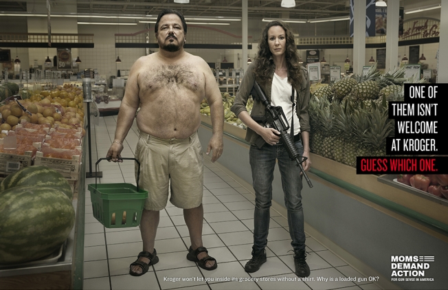 L’un des deux n’est pas le bienvenu dans les supermarchés Kroger. Devinez lequel ? L’association Moms Demand Action for Gun pose sérieusement la question à l’opinion publique et la réponse fait peur.
