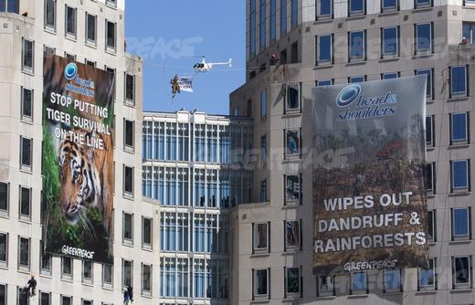 En parallèle de la campagne Thank You Mom?, des militants Greenpeace ont déployé deux banderoles de 18 mètres sur un des bâtiments phares de la société Procter & Gamble en Nouvelle-Zélande. Cette action ciblait particulièrement le shampoing Head and Shoulders : « Head & Shoulders: cessez de jouer avec la survie du tigre » et « Head and Shoulders : supprime les pellicules et les forêts tropicales».