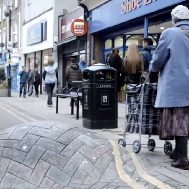 Le spot montre la réaction des passants – ou plutôt la non-réaction des passants – face à l’apparition d’une bosse de plus en plus grosse sur le trottoir.
