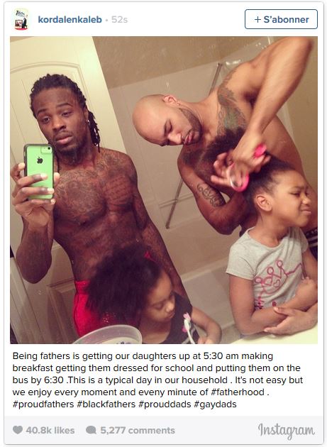 Débutée en novembre dernier aux Etats-Unis, la campagne « I am a Generation Image » souhaite mettre en avant cette génération qui a fait sienne la communication par images et qui s’est approprié les réseaux comme Instragram, Vines ou Pinterest. Et pour honorer ces yeux grands ouverts sur leur monde, Nikon a envoyé un coffre comprenant du matériel photographique de pointe à six personnes choisies pour leur singularité. Parmi elles, deux jeunes comédiennes, un cycliste urbain, un avocat pour les SDF, une famille ayant reconstruit indépendamment sa maison suite à la perte de la leur après la crise de 2009 mais aussi une cuisinière végétarienne et le couple de Kordale et Kaleb. Et c’est surtout ce dernier qui nous intéresse. Ce couple de papas gays s’était fait connaître de la toile après avoir posté sur leur compte Instagram un touchant portrait de leur quotidien.