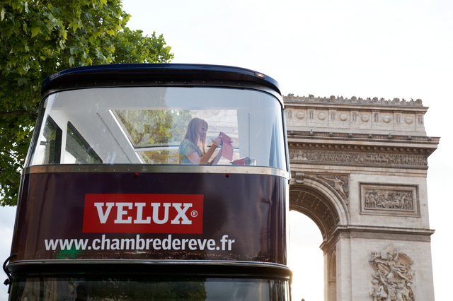 Pour ses 50 ans, Velux offre la possibilité de dormir à la belle étoile en plein Paris avec un bus au toit de verre spécialement conçu pour l’occasion.