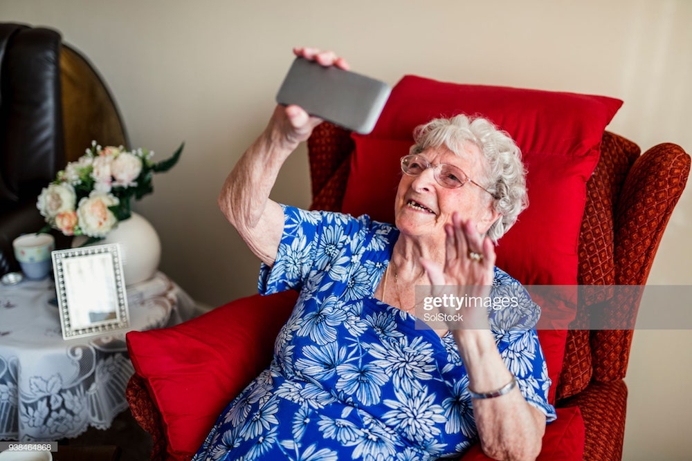 Avant de partir, vous passez en salle de vidéo conf ' pour dire au revoir à mamie.