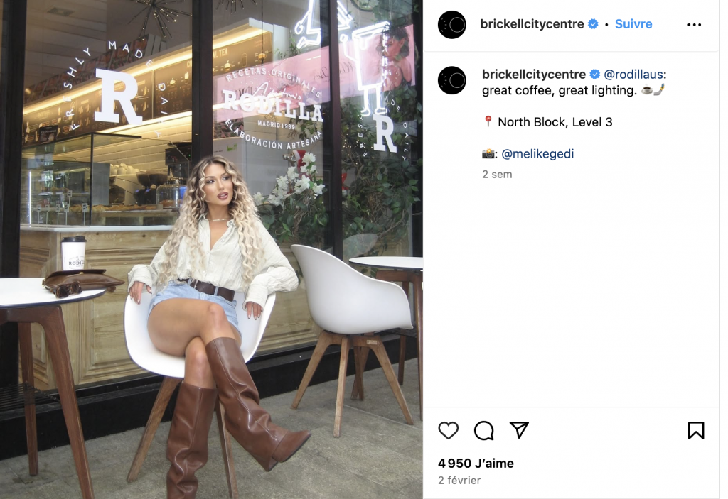 Certains grands établissements américains ont fait de leur esthétique hyperinstagrammable leur marque de fabrique. C’est le cas du Brickell city center, en Floride : ce mégacomplexe luxueux, initialement destiné à une clientèle d'affaires, propose un tas d’expériences hautement photogéniques : des restaurants chics, des rooftops, des événements selects. À grands coups de publications sur les réseaux, les centres commerciaux sont devenus l’endroit idéal pour « créer du contenu », tout en rencontrant de nouvelles personnes, comme l’explique Casey Lewis, autrice d’Afterschool, une newsletter dédiée aux cultures jeunes.