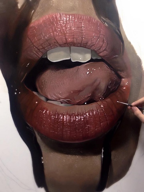 Difficile de résister à la sensualité dégoulinante des œuvres de Mike Dargas. Des peintures à l’exécution si précise qu’on croirait à des instantanés.