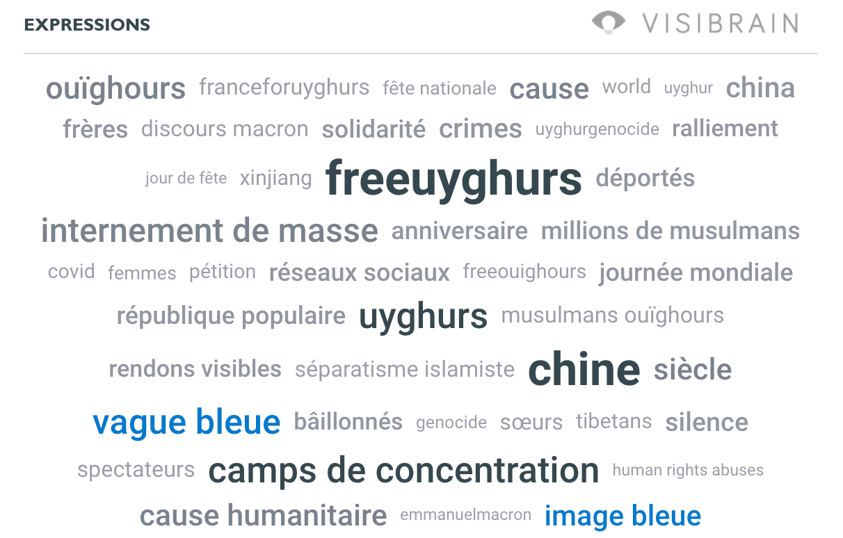 Rapidement, le message fait le tour de la twittosphère. Les termes « vague bleue » et « image bleue » figurent parmi les expressions les plus utilisées pour parler des Ouïghours sur le réseau.