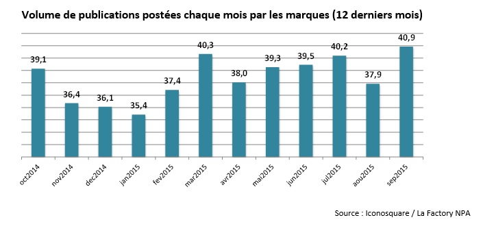 Deuxième élément, la tendance s’accentue sur les derniers mois avec une fréquence de publication en hausse de +15% entre le début et la fin de l’étude (oct-dec 2014 vs juil-sept 2015)