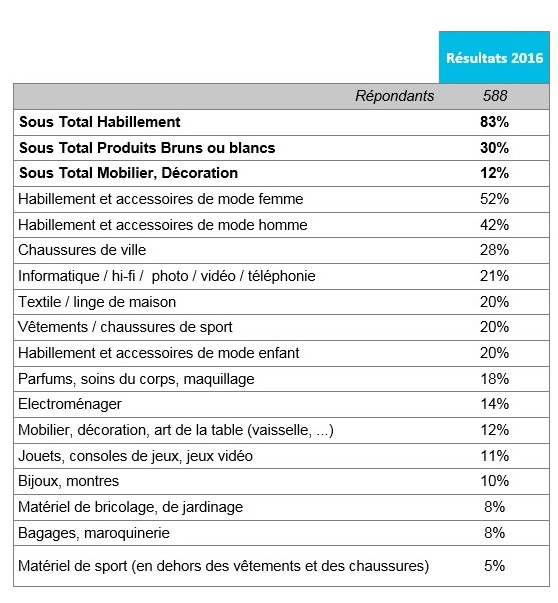 Quel(s) type(s) de produit avez-vous l'intention d'acheter à l’occasion des soldes d'hiver sur / Internet ?