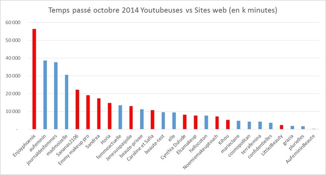 Néanmoins si les Youtubeuses sont aujourd’hui aussi, voire plus, puissantes que les sites web féminins, l’audience de ces Youtubeuses est âgée de 15 à 35 ans pour une grande partie, alors que les sites et blogs féminins touchent une cible plus diffuse.