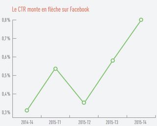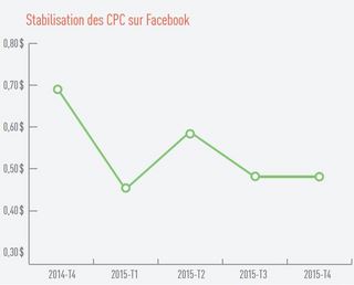 Le coût par clic est également en baisse sur l’année et se stabilise depuis le début 2015. Cet engagement accru avec les publicités, associé à des coûts inférieurs, rend l’option Facebook plus attractive pour de nombreux annonceurs