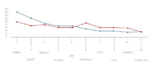 Linkfluence, spécialiste français du Social Media Intelligence et Taddeo, cabinet de conseil stratégique en communication, révèlent aujourd’hui les résultats exclusifs de leur étude « Social Media & Dirigeant du CAC 40 », réalisée du 1er janvier au 1er avril 2015. Entre le 1er janvier et le 1er avril 2015, la suite logicielle Radarly a permis d’interroger plus de 300 millions de sources et de capter plus de 80 000 publications issues du web social. L’analyse de ces data sociales met en lumière cinq insights inédits.