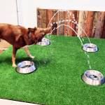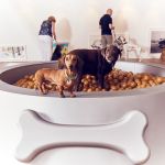 Une forêt peuplée de morceaux de viande, une gamelle géante remplie de balles en forme de croquettes, et des gamelles qui font office de fontaines : le designer a soigné l’exposition dans les moindres détails. Ainsi, rien d’étonnant à ce que les peintures, par exemple, vous paraissent peu colorées : les chiens ne distinguent en effet que certaines couleurs, comme le jaune et le bleu.