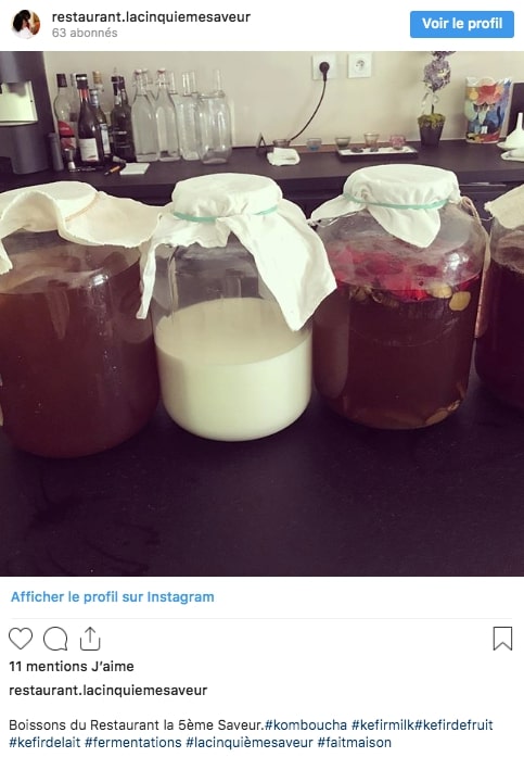 À Quimperlé en Bretagne, la carte du restaurant la 5ème Saveur entend bien prouver que terroir et fermentation font bon ménage. On y retrouve donc des plats plutôt traditionnels façon probiotiques : la salade de crevettes est donc accompagnée de kéfir de lait et le filet mignon de son jus de fermentation. Même le foie gras de canard est fermenté.