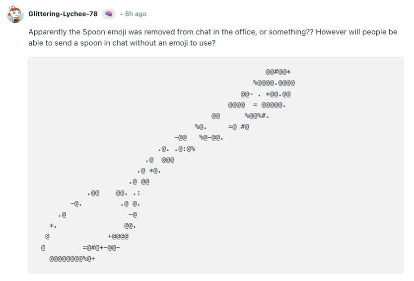 L’émoji cuillère est utilisé dans les visioconférences internes avec les représentants du DOGE. Ces manifestations internes de mutinerie vis-à-vis du DOGE ont provoqué le bannissement de l’émoji le jeudi 6 février. Mais l’idée a fuité, l’émoji cuillère est employé en signe de solidarité sur tous les réseaux sociaux, et notamment sur BlueSky, où des célébrités s’en emparent, notamment Mia Farrow.